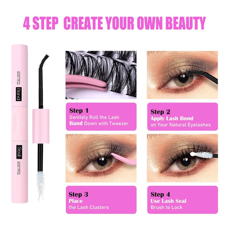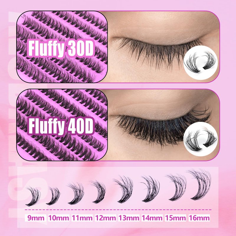 - Better Adhesive: ALUDALASY Lashes extension kit has 280 pcs lash clusters a tray which is mixed length. You can get different lash styles to match makeup by this lash clusters kit. ALUDALASY eyelash extension kit have lash clusters, lash bond and waterproof seal and lash tweezer. It is suitable for beginner who want have efficient fluffy lash clusters kit. This wispy lash clusters kit is sufficient to make lash extension at home