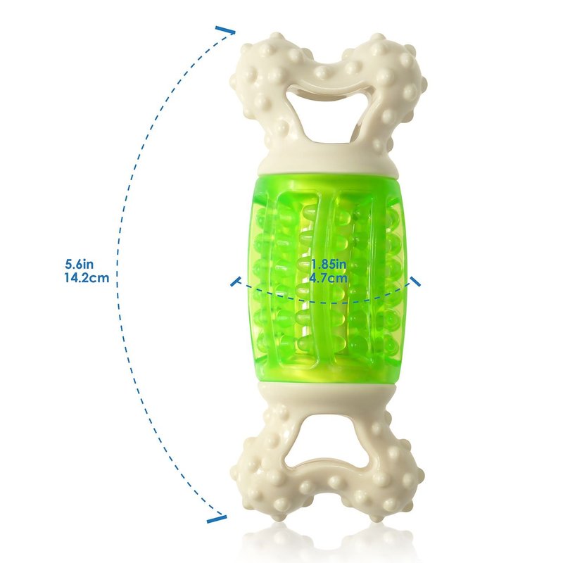 Package Includes:1 x Squeaky Bone-Shaped Rubber Pet Toy, Green/White Product Description:1 x Squeaky Bone-Shaped Rubber Pet Toy, Green/White. Made with the toughest long-lasting material, perfect for even the most aggressive of chewer. The durability of the toy will allow it to develop into your dog’s favorite. Specially designed bumps and grooves will help your dog massage its gums and clean its teeth. Differing textures and materials provide your dog with various options, keeping the toy feeling new and exciting. The perfect stress reliever helps your dog reduce anxiety and eliminate boredom. Know your dog will be safe when chewing on the toy, as it is made with non-toxic environmentally friendly material. The fun squeaking sound will keep your pet constantly entertained and interested. Small handles and the lightweight nature make it incredibly easy to travel with. Dimensions: 5.60" x 1.85". Color: Green/White. Material: Rubber WARNING: This product can expose you to chemicals including DEHP, which is known to the State of California to cause cancer and birth defects or other reproductive harm. For more information go to P65Warnings.ca.gov. Product names are trademark of listed manufacturer or other owners, and are not trademarks of Insten Fulfillment. The manufacturer does not necessarily endorse use of these products.