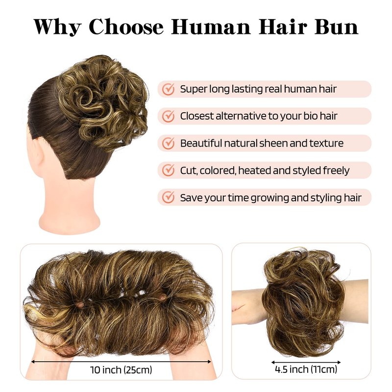 - [100% Human Hair Quality] - Our bun hair extensions closely match your bio hair texture with a silky soft feel, long lifespan, and styling flexibility that synthetic hair pieces can never provide.