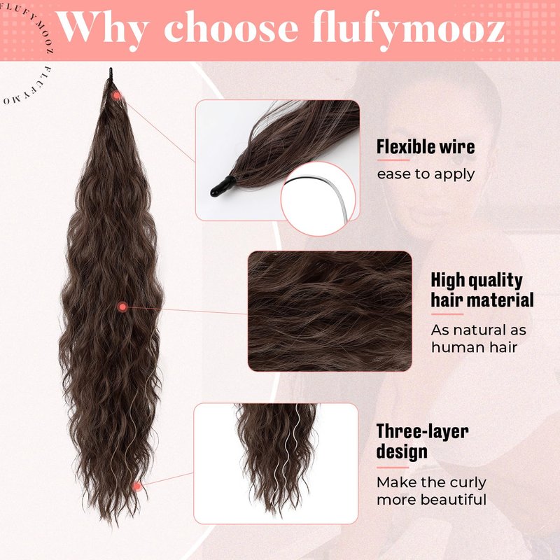 - π[A new way to wear]: The flexible and bendable wire, combined with the winding of the ponytail, can make it extremely comfortable to wear. There will be no foreign body feeling like a gripping clip or a hanging feeling like a drawstring. It is designed for comfortable wearing.