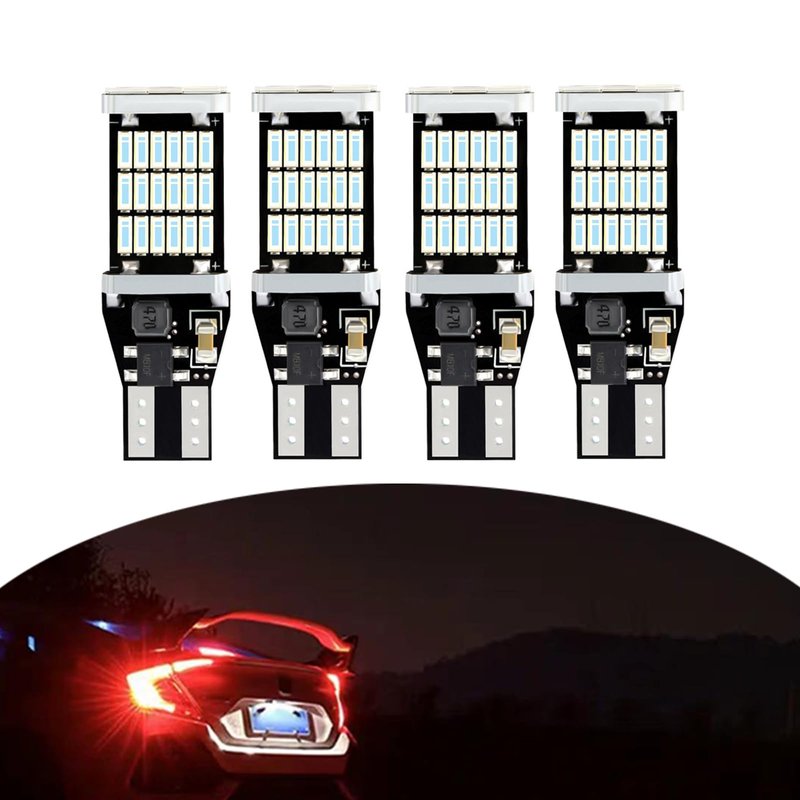 Fluher 4 PCS Car T15 Brake Light, 4014-45SMD 6500K 360 Degree High Brightness Reversing Light Turn Signal, CANBUS Decoded Stepless Plug and Play, Universal for Most Cars (Red)