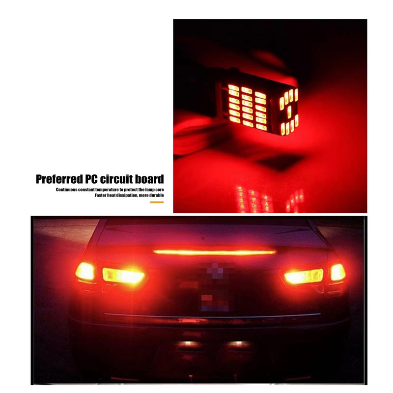 - 360-degree Light Exposure: The light source of this light bulb adopts high-quality 4014 wick, high-bright astigmatism integrated lamp body LED lamp beads, no dark areas, high concentration, and more energy-saving. It starts instantly in 0.01 seconds without preheating. It is brighter, faster and more responsive. It provides a strong warning, allowing the car behind you to take timely measures, making driving safer.