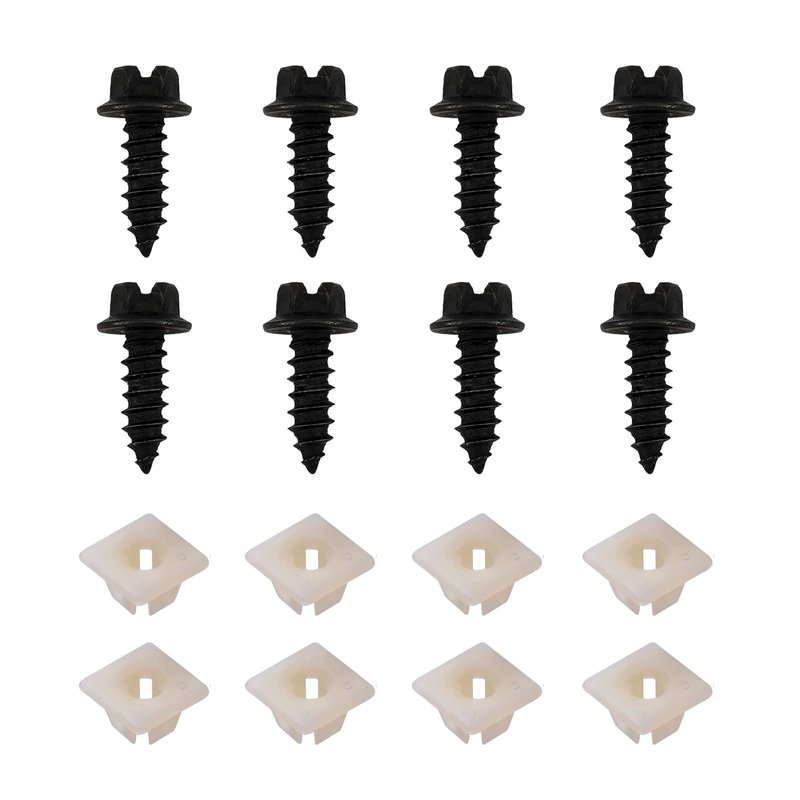 Fluher 8 PCS Car Bumper License Plate Rivet Buckle, Dustproof Rustproof Body Repair Fastener Screw + Base Fixed Nylon Screw Insert, License Plate Frames Screw Kit, Universal for Car Accessory (Black)