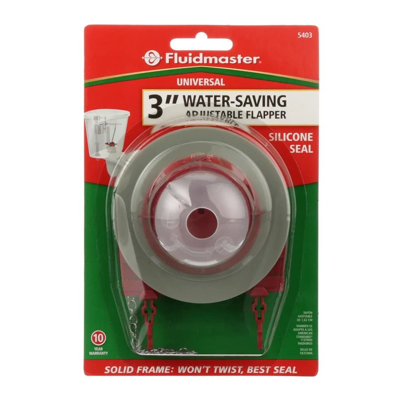 Fluidmaster 5403 Water-Saving Long Life Toilet Flapper for 3-Inch Flush Valves, Adjustable Solid Frame Design, Easy Install (Red)