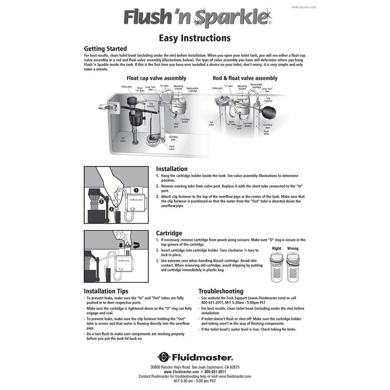 - For use with Flush ‘n Sparkle Automatic Toilet Bowl Cleaning System