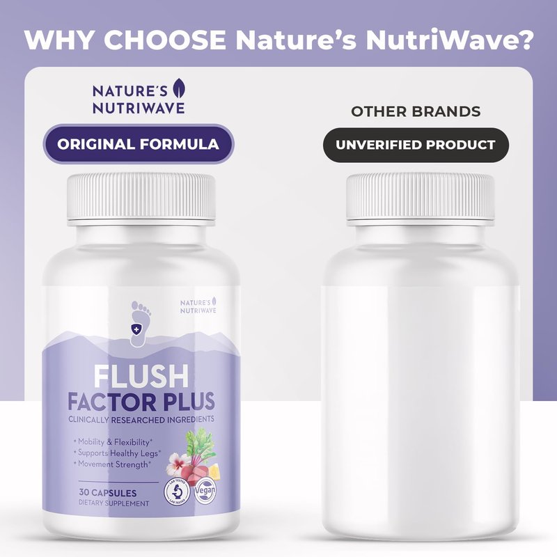 Flush Factor Plus - Original Formulated FlushFactorPlus for Leg Comfort, 100% Natural Ingredients, Made in USA, No Stimulants | 30 Capsules, 6 Month Supply