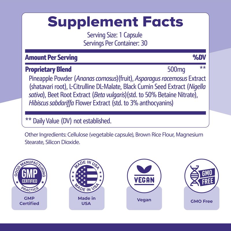 The proprietary blend in Flush Factor Plus includes thoughtfully selected ingredients like Pineapple Powder, Beet Root, and Hibiscus Extract, which are known for their high quality and natural properties. These ingredients work together to provide an effective formula that supports your overall well-being. The capsules are easy to incorporate into your routine, making it simple to stay consistent.