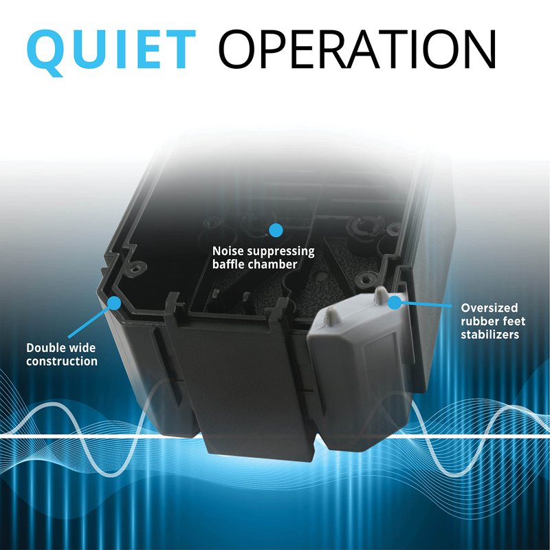 - Engineered noise dampening baffle chamber and oversized rubber feet stabilizers help prevent vibration and noise for ultra-quiet operation