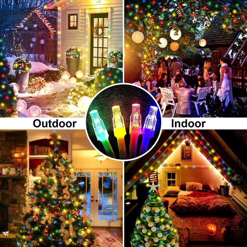 - 【IP44 Waterproof for Outdoor Decorations】Christmas lights outdoors can be used normally in heavy rain, and don't damage the string light even in strong winds and blizzards. It's perfect for indoor & outdoor or anywhere you want to decorate. Create a romantic atmosphere for Christmas, new year, weddings, holidays, party, night party, birthday, bar, restaurant, home, garden, patio, house, stage etc.
