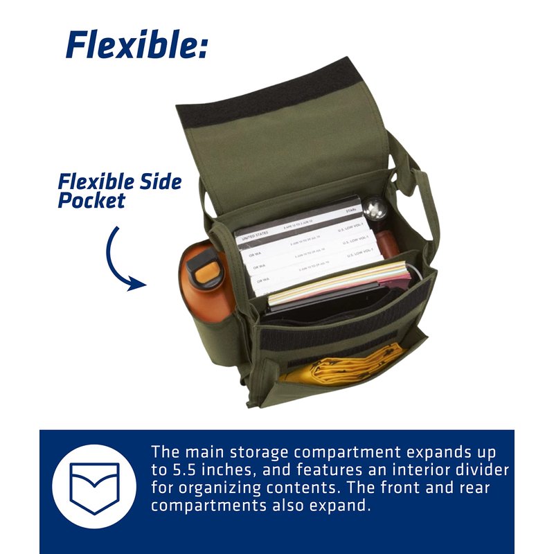 FLYBOYS – Regular Pubs Bag – Aviation Shoulder Bag with Expanded Capacity – 7.5" x 10" Pilot Gear Bag for Professional & General Aviation – Olive Green