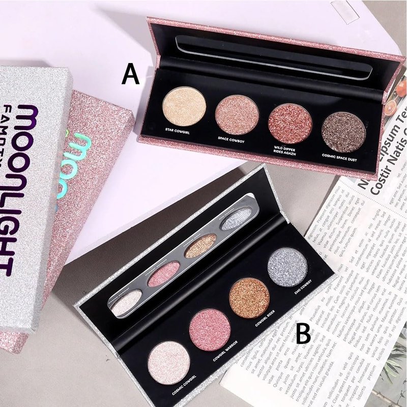 FLYEEO Shiny Shimmer Highlight Eye shadow Palette 4 Colors, Cosmetics Shimmer Eyeshadow Palette, Cruelty-Free and Vegan Formula, Glitter Shimmer Eyeshadow for Professional Makeup Kit (A#)