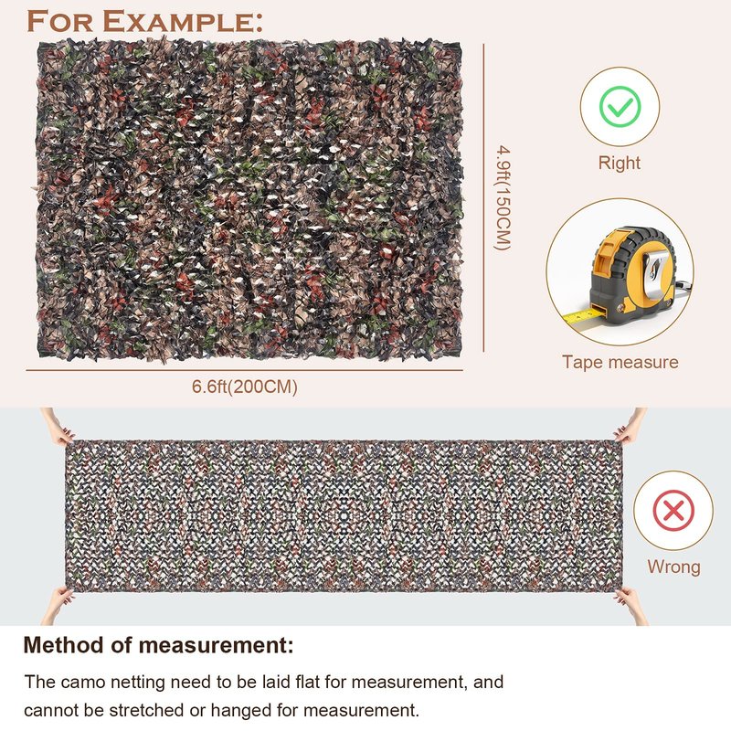 - 【Wide Application】- Our high quality camo netting are usable for various applications, such as Hunting, Shade, Wildlife Watching, Military Applications, Shooting, Hiding, Covering, Shading, Backdrop of the stage, Decorating, Camouflage and more. Every net within our store offers maximum concealment and outline suppression.