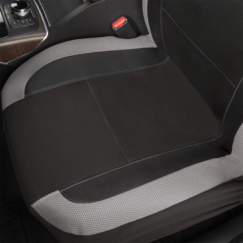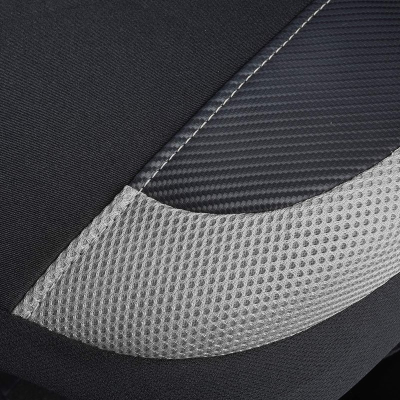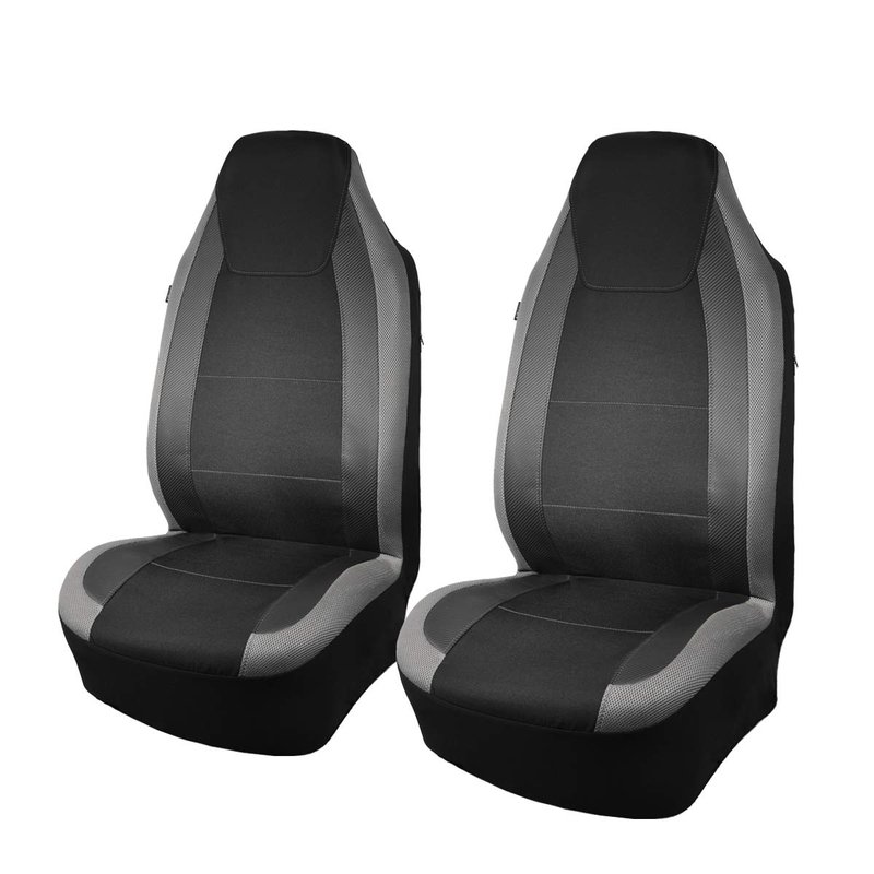Flying Banner car seat Covers Quality Carbon Fiber Air Mesh Fabric Sport Low High Back Bucket Back Pocket Arm Rest (2 Fronts - High Bucket, Gray)