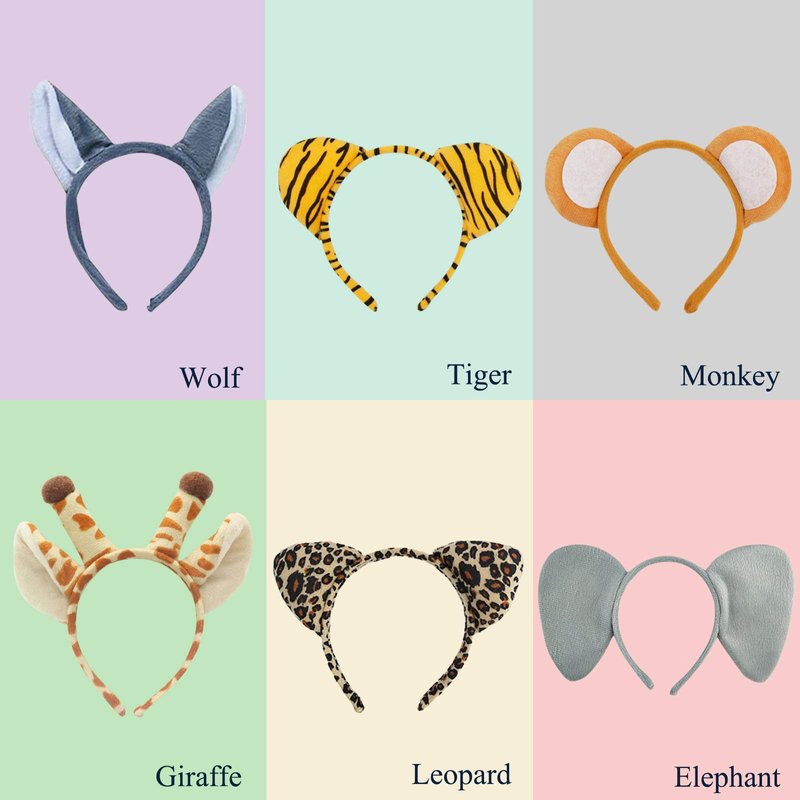 Wild one party headbandsPackage includes 1 monkey ears headband 1 elephant ears headband 1 tiger ears headband 1 leopard ears headband 1 giraffe ears headband 1 wolf ears headband SIZE One size fits most, kids and adults. After sale seviceIf you have any questions, feel free to ask me. Hope you have a memorable time with our woodland headbands!