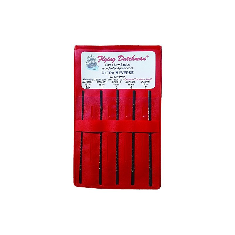 - The Flying Dutchman Ultra Reverse Five Dozen Scroll Saw Blade Variety Pack comes with one dozen of each of the following sizes: #2/0, #1, #3, #5, and #7.