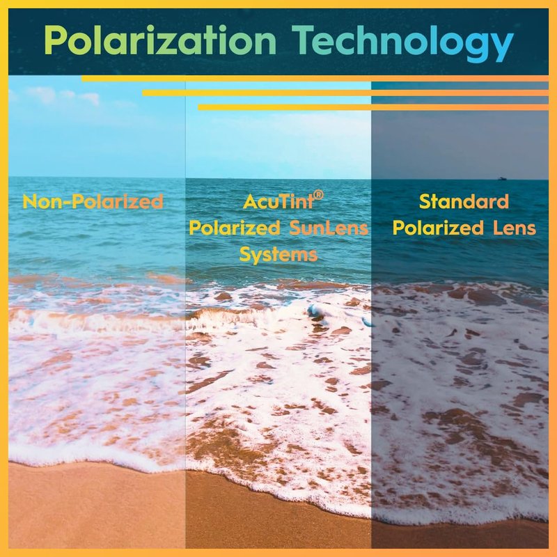 - POLARIZED SUNGLASSES FOR MEN & WOMEN. AcuTint Polarized Lens System blocks 100% of UVA and UVB rays, sharpens contrast and clarity, and eliminates glare, allowing you to see beneath the water’s surface. Glasses are hard coated for scratch resistance.