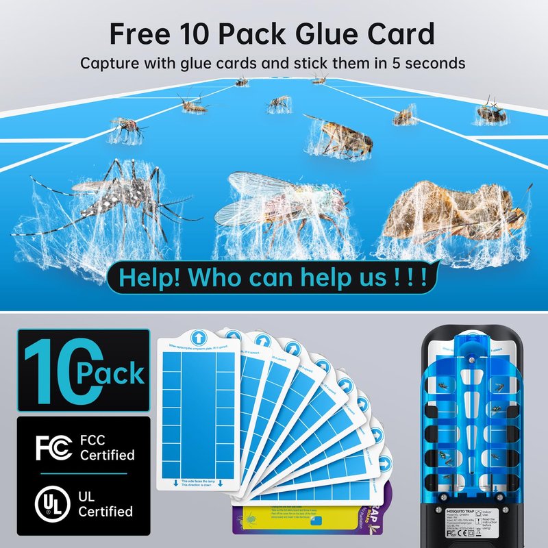 - 10 GLUE BOARDS + 9W UV BULBS: We have added to Fly Trap set 10 Glue Boards, to ensure that you have refills for a longer period of time. and the 9W UV light naturally attracts flying insects to the trap to protect large rooms