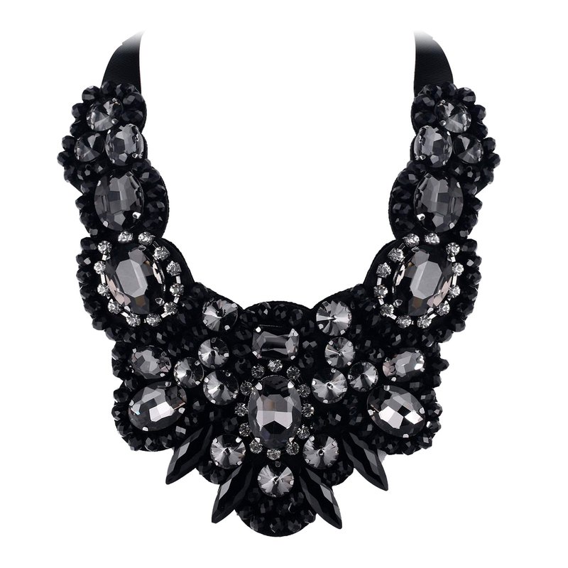 Flyonce Black Rhinestone Crystal Bib Chunky Collar Statement Necklace for Women Girls Costume Jewelry