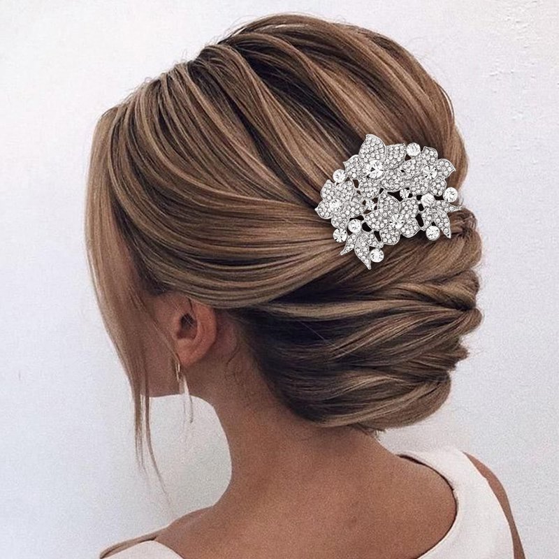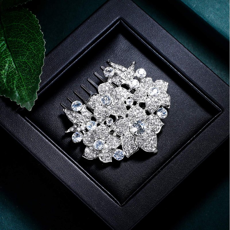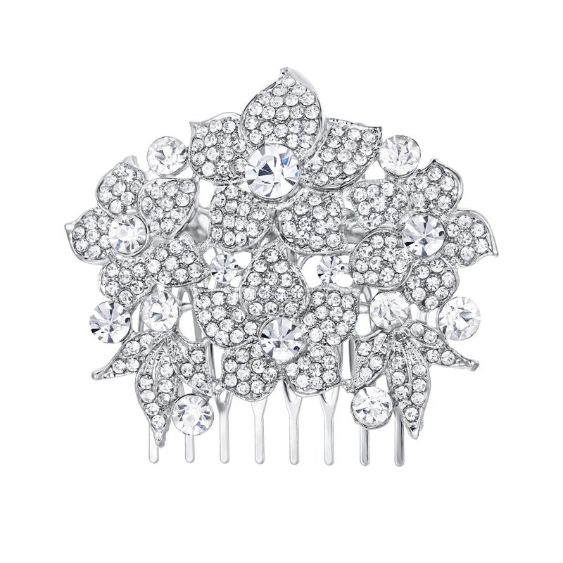 Flyonce Women's Austrian Crystal Flower Leaf Cluster Wedding Bridal Hair Comb Clear Silver-Tone