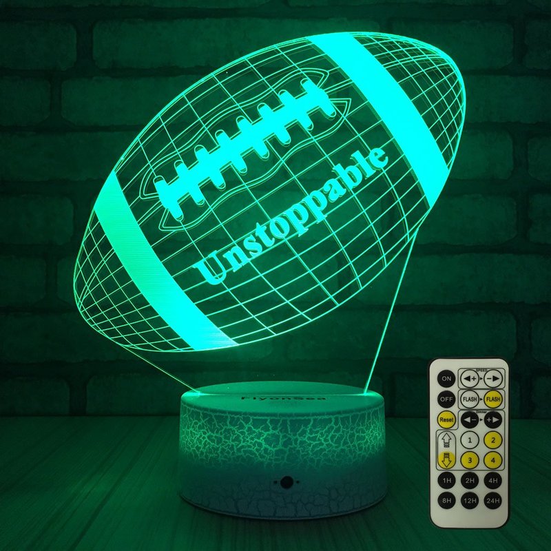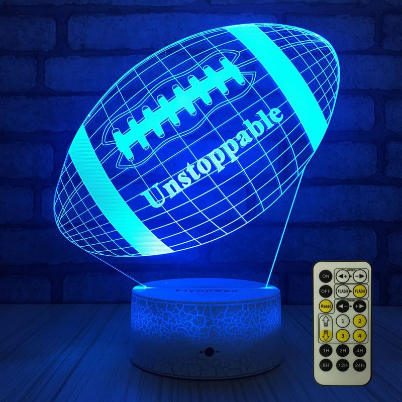 FlyonSea Football lamp, Rugby Ball Bedside Lamp 7 Colors Change + Remote Control with Timer Kids Night Light Optical Illusion Lamps for Kids Lamp As a Gift Ideas for Boys or Kids