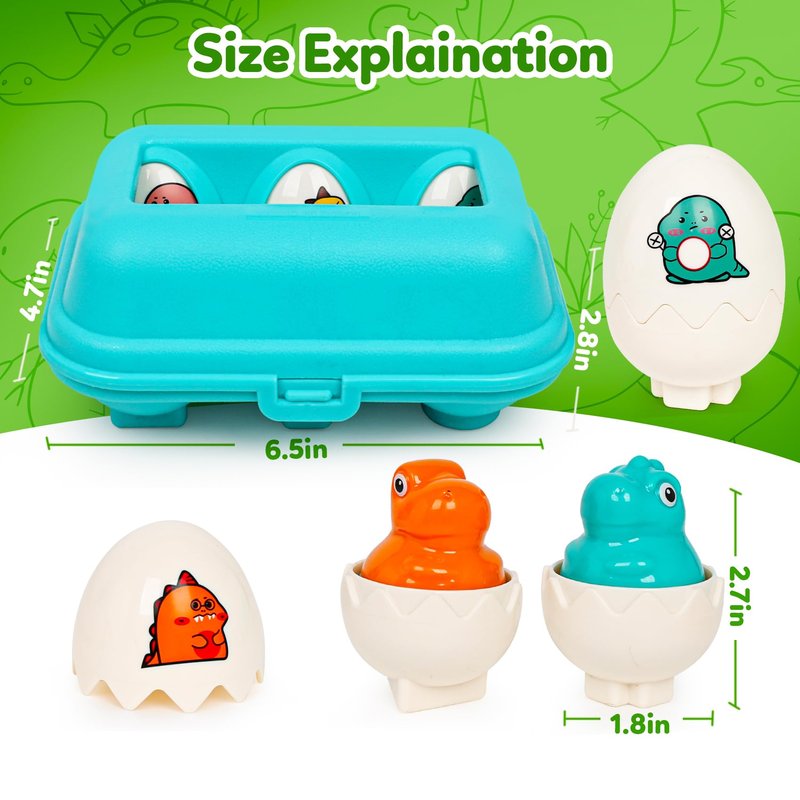 - Realistic Eggs Toys Design:Unique Matching Eggs toys set features realistically shaped eggs with adorable dinosaur faces hidden inside, creating a delightful surprise for toddlers as they crack open the eggs.