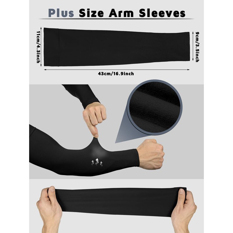 Foaincore 4 Pairs Plus Size Cooling Arm Sleeves Sun Sleeves Men Women UV Sun Protection Sleeves Oversized Compression Sleeves(Black, White, Gray, Royal Blue)