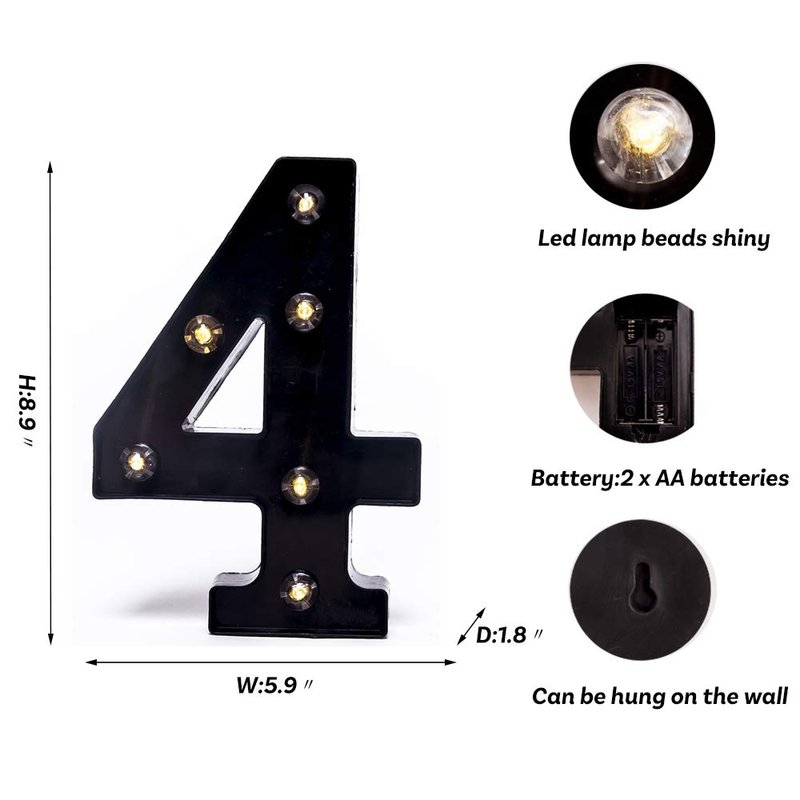 Foaky Black LED Marquee Number Lights Sign Light Up Marquee Number Lights Sign for Night Light Wedding Birthday Party Battery Powered Christmas Lamp Home Bar Decoration