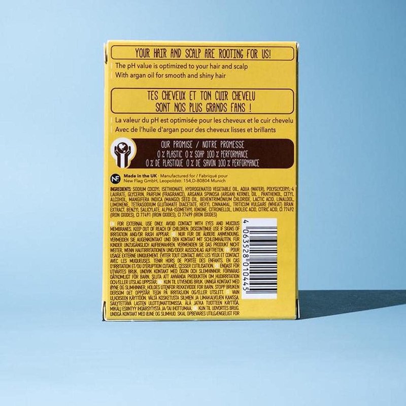 Foamie Solid Conditioner Kiss Me Argan is specially formulated for dry and unruly hair, leaving hair shiny and smooth to the tips. Hair conditioner for damaged dry hair. 3 in 1 solid hair care: massages, cleanses and nourishes. Our solid hair care products are 100% plastic-free and dermatologically tested. Foamie solid care products are pH-optimized and perfectly adapted to skin and hair. The solid care is not soap, which is why our products are gentler on the skin compared to soaps. Our promise: 0% plastic. 0% PEG. 0% mineral oils. 0% silicones. 0% Lilial and 0% soap. By eliminating plastic, Foamie is more environmentally friendly than traditional liquid conditioners in plastic bottles. With every solid conditioner you use, you save about 2 plastic bottles, saving the environment. Together with the organization "The Ocean Cleanup" we collect plastic waste, and now you can help us. For every Foamie sold, we keep the oceans a little cleaner. To use: lather the bars between your palms with a little water - the curved, ergonomic shape makes application easy. Spread the product through your hair or the ends of your hair, leave on for two to three minutes, then rinse thoroughly. Finally, simply hang the rods to dry on the integrated, environmentally friendly cotton cord, and you're done!