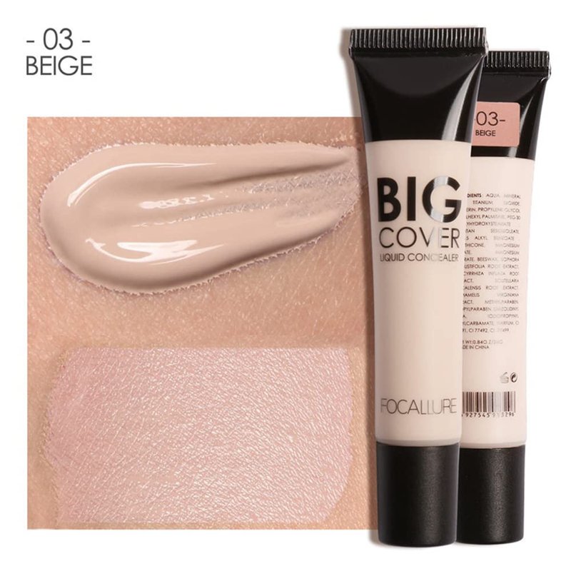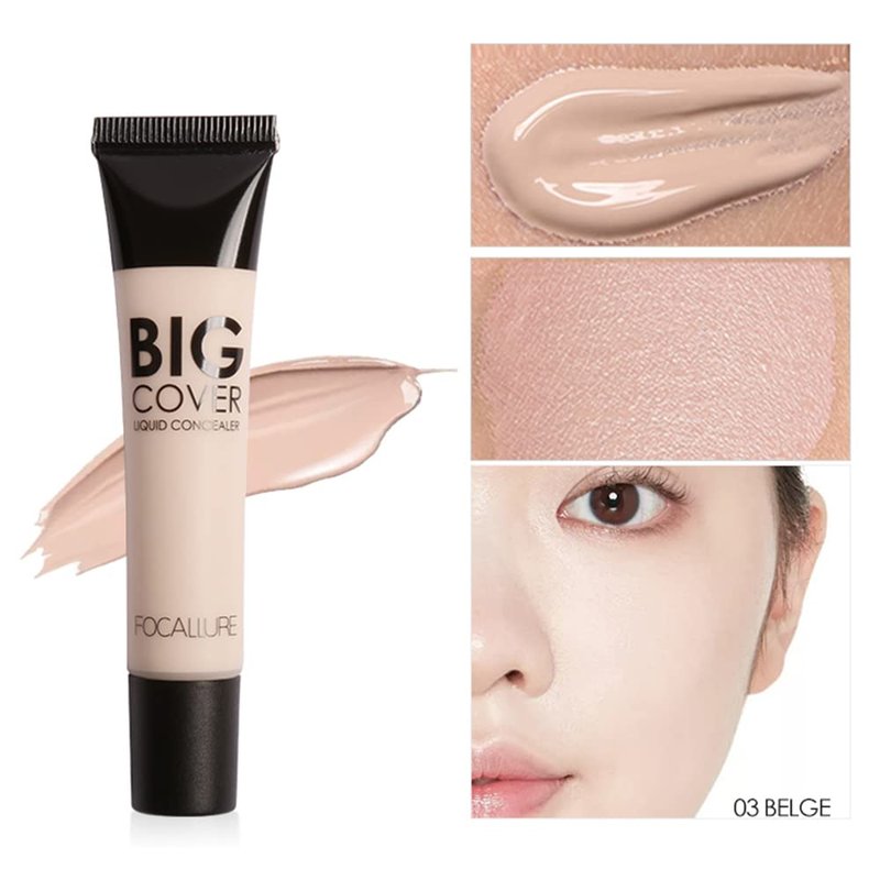 - 【FOCALLURE Big Cover Concealer】With 4 shades, this oil-free concealer matches skin tones to deliver a more even complexion, with a flawless natural finish. The oil-free formula is breathable for natural-looking coverage that won't clog pores.
