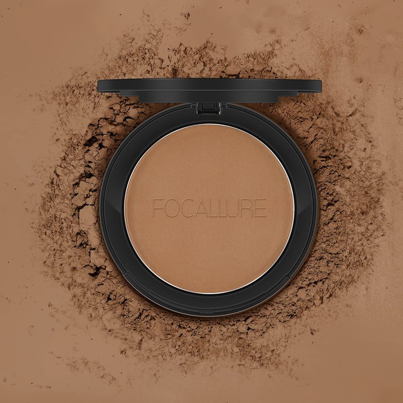 FOCALLURE Flawless Pressed Powder, Control Shine & Smooth Complexion, Pressed Setting Powder Foundation Makeup, Portable Face Powder Compact, Long-Lasting Matte Finish, Almond