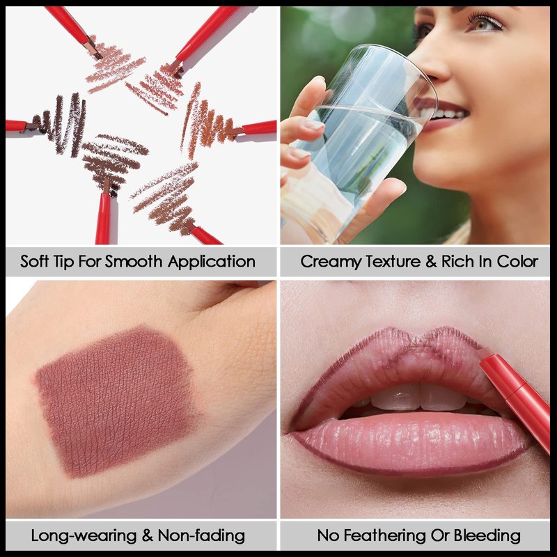- 💋NO FEATHERING & NO BLENDING: The buttery soft, creamy formula goes on easily and prevents lipstick bleeding and feathering. Moreover, this multifunctional lip definer pencil can also be applied to the eyes and cheeks.