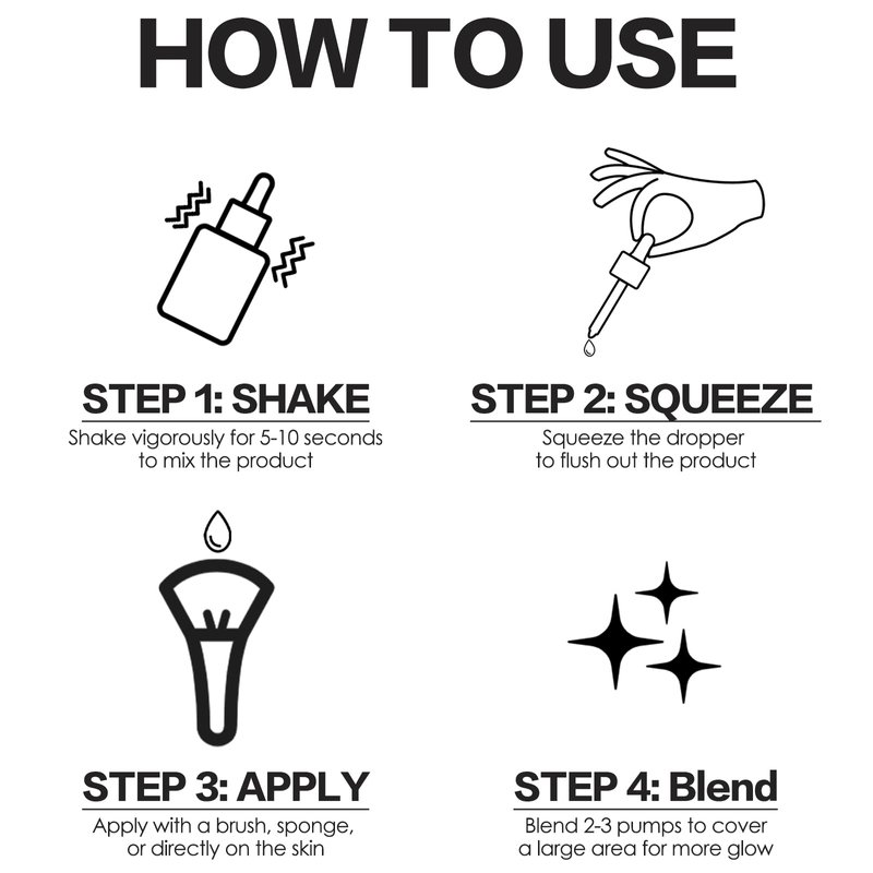 - 👑 HOW TO USE - Apply the liquid highlighter alone or add some drops to other makeup products to customize your glow complexion. Notes: Please wait a moment to let it dry completely.