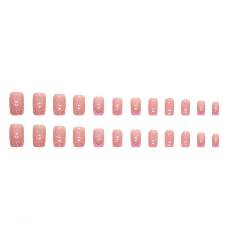 Foccna 24pcs French Tip Pink Fake Nails Press on Nails Medium Square LOVE Design Glossy False Nail Tips Artificial Finger Manicure for for Women&Girls
