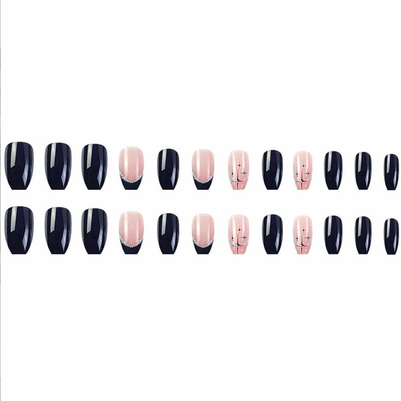 Foccna Coffin False Press on Nails Black Acrylic Fake Nails for Girl Full Cover Wear Finger Glossy Nail Bling Design Art Tips for Women and Girls 24 pcs