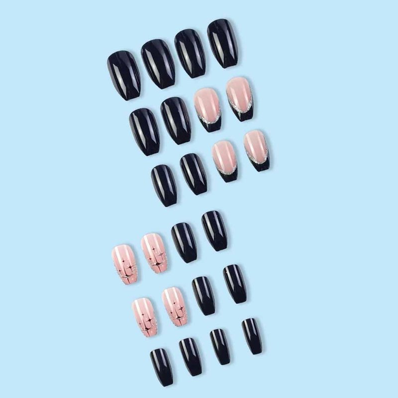 - Easy to Use:Black fake nails with glue strcker can get your favorite manicure in just 5 minutes without waiting at the nail salon. Some simple steps allow you to get the same impressive professional effect at home.