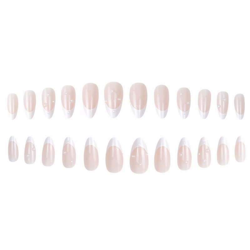 Foccna French Press on Nails Medium, Pearl White Fake Nails Almond Acrylic False Artificial Nails for Women and Girls 24 pcs