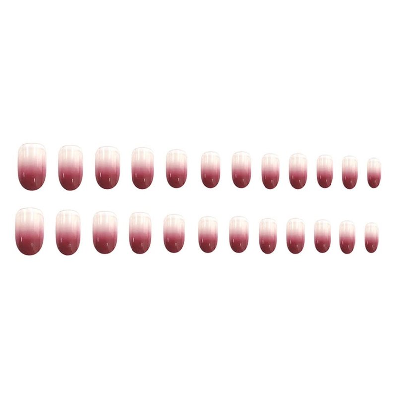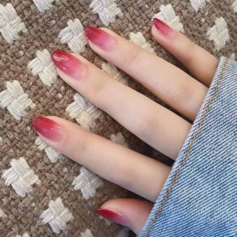 Foccna Red Almond Fake Nails Medium Length-Press on Nails Gradient False Nails Full Cover False Nail - Tips 24 pcs