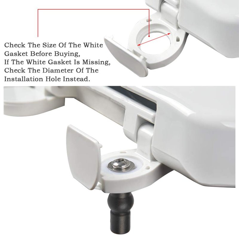 FOCCTS Toilet Seat Hinges Fixings, 4 Pcs Toilet Seat Hinges Screw Universal Toilet Seat Bolts Kit Toilet Expansion Screw Toilet Seat Nuts Replacement Feature Easy to fit done in minutes, simply remove old bolts and fit the new toilet seat hinge fixings Toilet cover fixed plug-in expansion screws Universal toilet seat hinge bolt with quality rubber, Smooth surface.Excellent toughness, Not easy to break Universal toilet seat hinge bolts kit great for broken or old toilet seat hinges Specifications Steel Screw Material: steel Diameter: 4.7mm/0.19inch Long: 48mm/1.89inch Color: silver Tube Nut Material: rubber(expandable ball) Diameter: 18mm/0.7inch (thickest), 14mm/0.55inch Long: 40mm/1.57inch Color: black White Washer Material: ABS plastic (round cards) Diameter: 28mm/1.1inch Color: white Metal Washer Material: metal Diameter: 16mm/0.63inch Color: silver How to install the toilet seat hinges fixings? 1.Just push them through the holes. 2.Put on the supplied washers. 3.Screw from the top. 4.When you tighten the bolts the washers crush down into the holes and you need to be careful you do not tighten the bolt so much it pushes through the washer. Packing Includes: 4 x Toilet Seat Fixings Screw Please Note: These toilet seat hinges screws is suitable for 14 - 18mm hole,please confirm the diameter of your toilet seat hole before purchase.