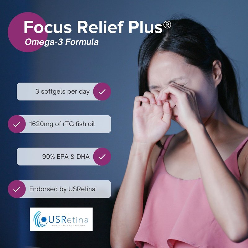 - DEVELOPED AND RECOMMENDED BY EYE DOCTORS: The Focus Relief Plus for retinal health and dry eye has been developed by eye doctors and formulated with higher concentrations of re-esterified triglyceride (rTG) omega-3 fatty acids, with over 90% EPA and DHA. It also contains 75mg of GLA, which when combined with EPA/DHA, helps reduce inflammation.