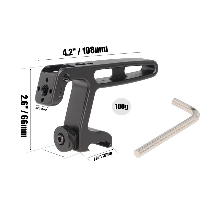 - 1/4" Thread Mount Top Handle Grip: Mini top handle can be attached to the camera cage through dual 1/4"-20 Thread screws for stabilizing shooting.