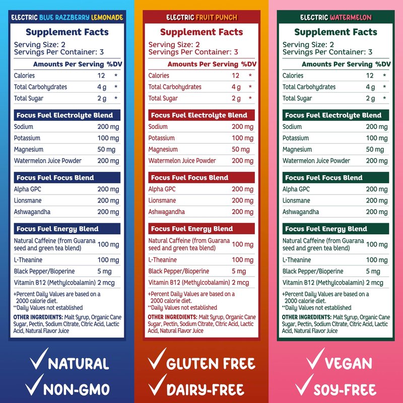 - A FUEL FOR ANY SITUATION Whether you’re at your desk, or on the go, FocusFuel provides an easy, hassle-free option to stay energized throughout your busy day. Perfect for busy lifestyles, these compact gummies offer a quick and easy way to stay alert and focused anytime, anywhere.