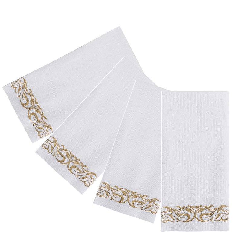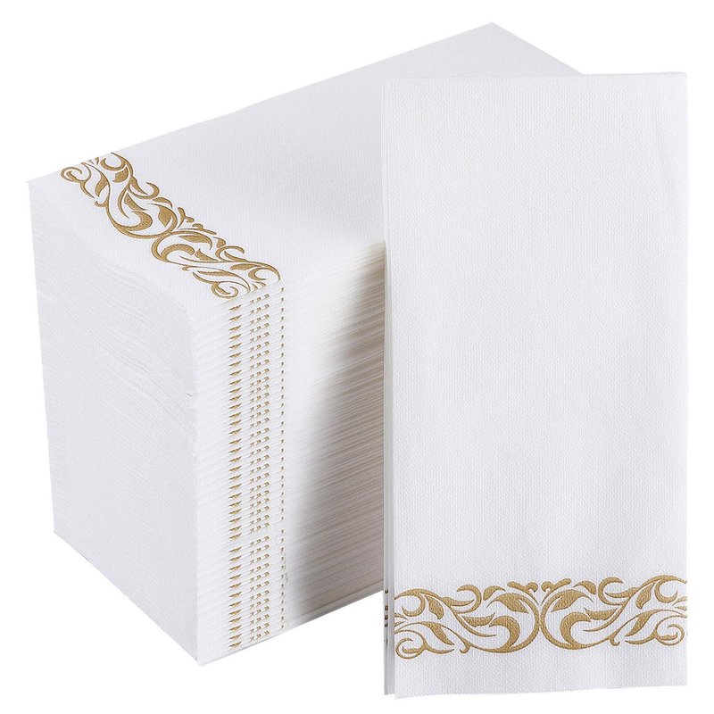 - 【ELEGANT DESIGN】- The white napkins are printed with delicate gold trim decorative design, adding an elegant and stylish atmosphere to your party, dining table, or bedroom. Linen-feel, extra durable paper napkins offer guests top-notch comfort and luxury.
