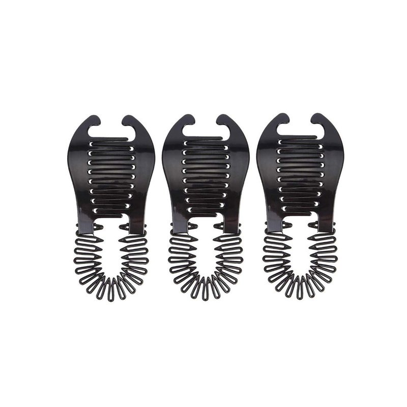 Fodattm 3PCS Women Stretch Flexible Hair Combs Tooth Headband Interlocking Banana Clip Clincher Two Sides Hair Comb Elongated Ponytail Holder Hair Styling Tool (Black)