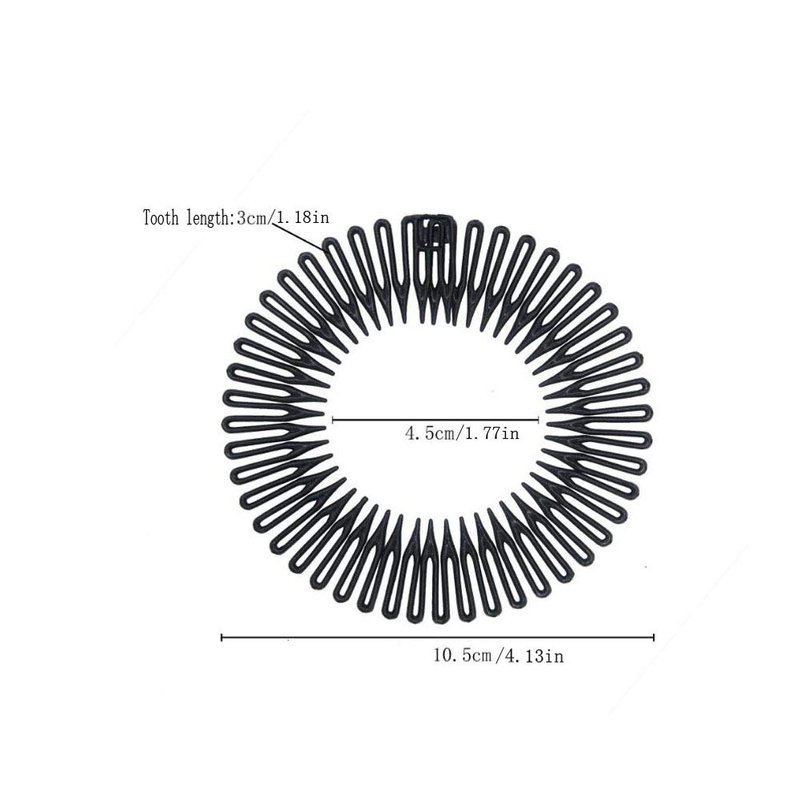 Fodattm 6PCS Women Lady Stretch Flexible Plastic Full Circle Hair Comb Headband Hair Hoop Hair Clip Spring Head Band with Deep Teeth (Clear)