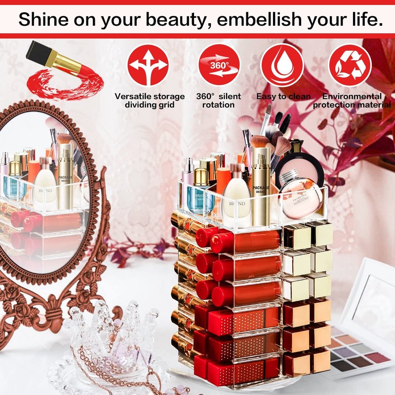 - 360 Degree Rotation: The bottom is designed with a rotatable base, allowing you to rotate and display all your lipsticks 360-degree rotation. There is no unnecessary noise when rotating our lipstick tower, such an chic and stylish design can help you choose your favorite lipstick easily and quickly, saving time and effort