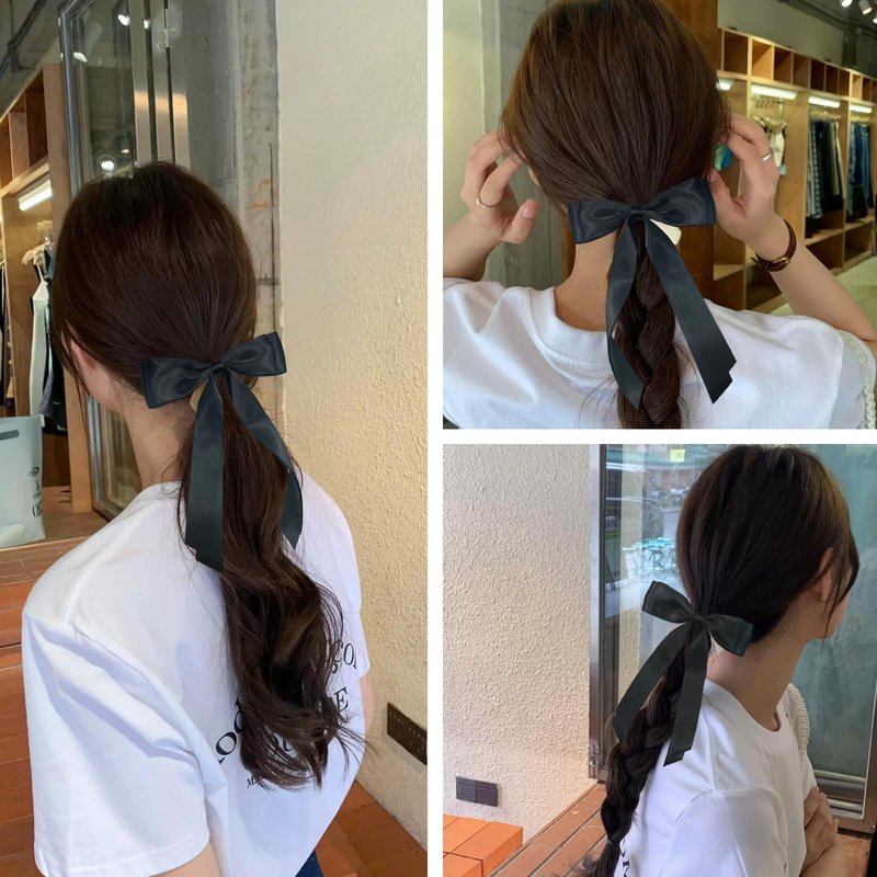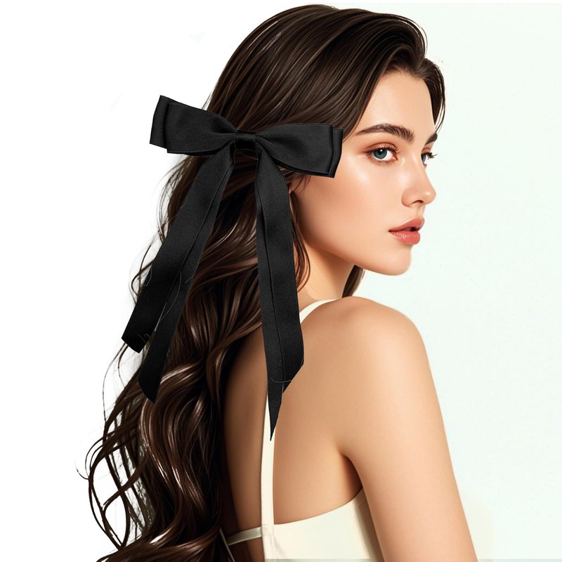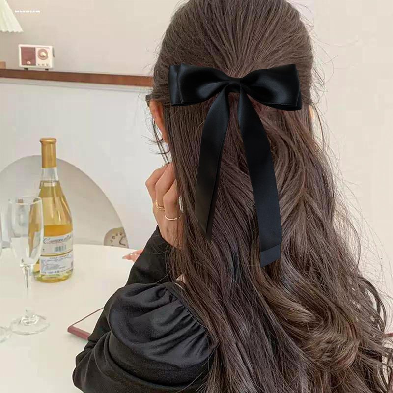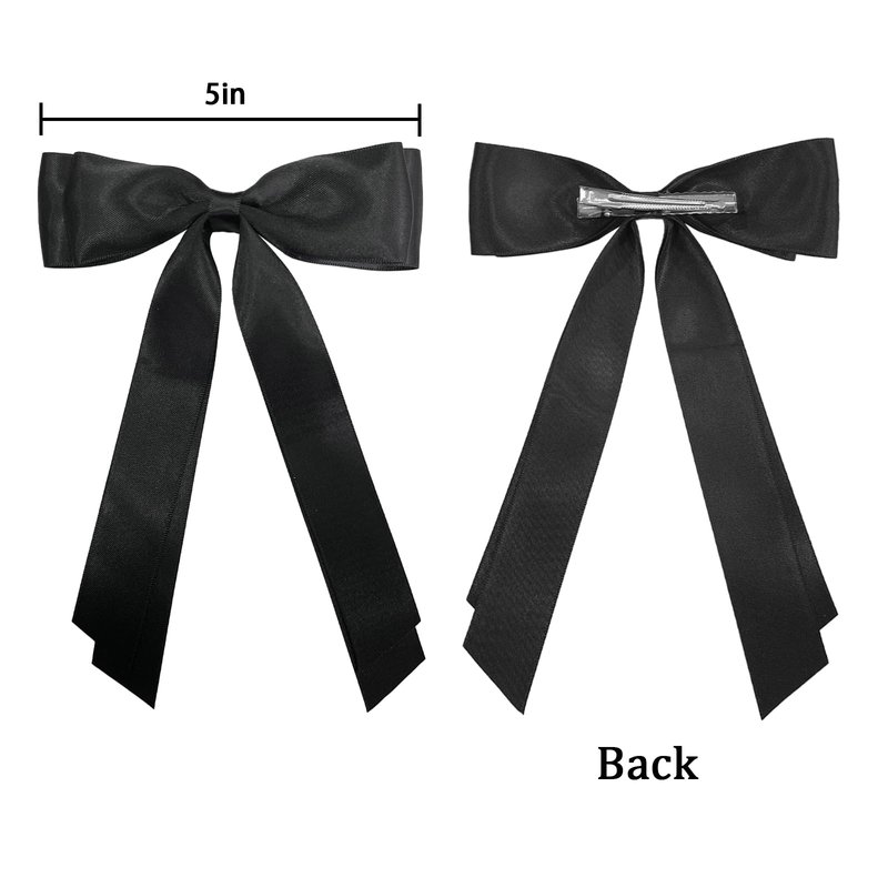 Fodofodo Hair Bows for Women,Bow Hair Clips,Satin Hair Ribbon Bow,Tassel Ribbon Bowknot With Long Tail,Ponytail Holder,Metal Clips Hair Bow Accessories for Women Girls (Black)