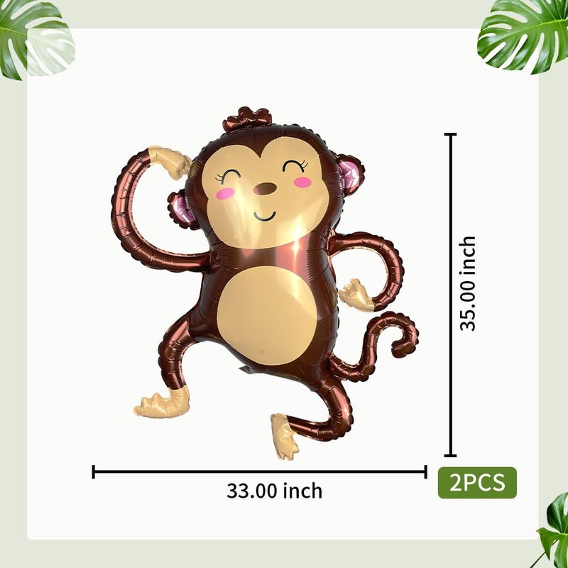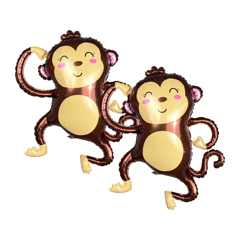Foil Helium Adorable Monkey Shaped Jungle Safari Animal Balloons for Wildlife Theme Birthday Supplies Party Decorations(2 Pieces)