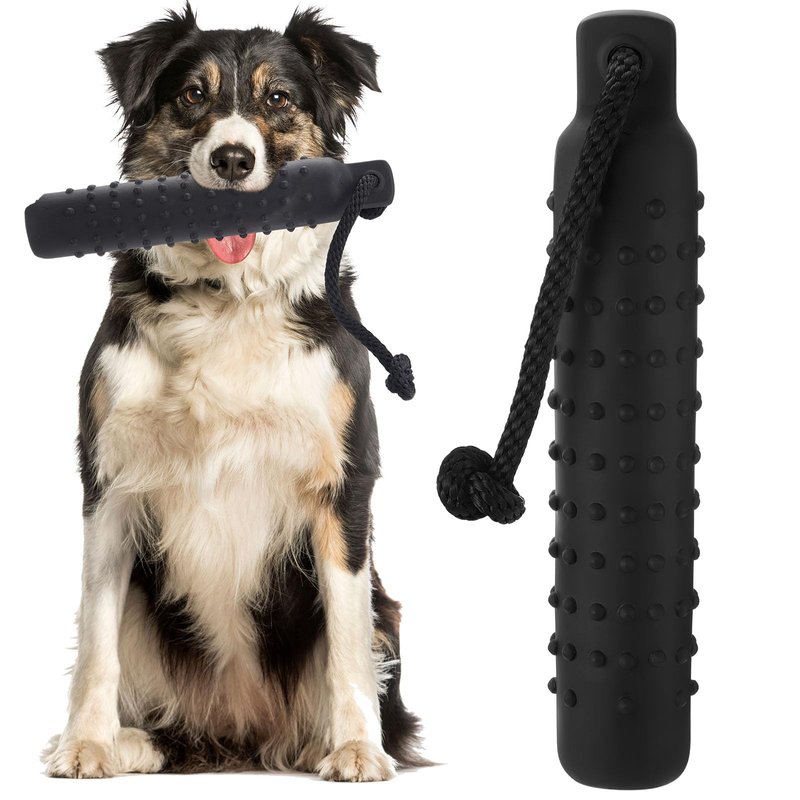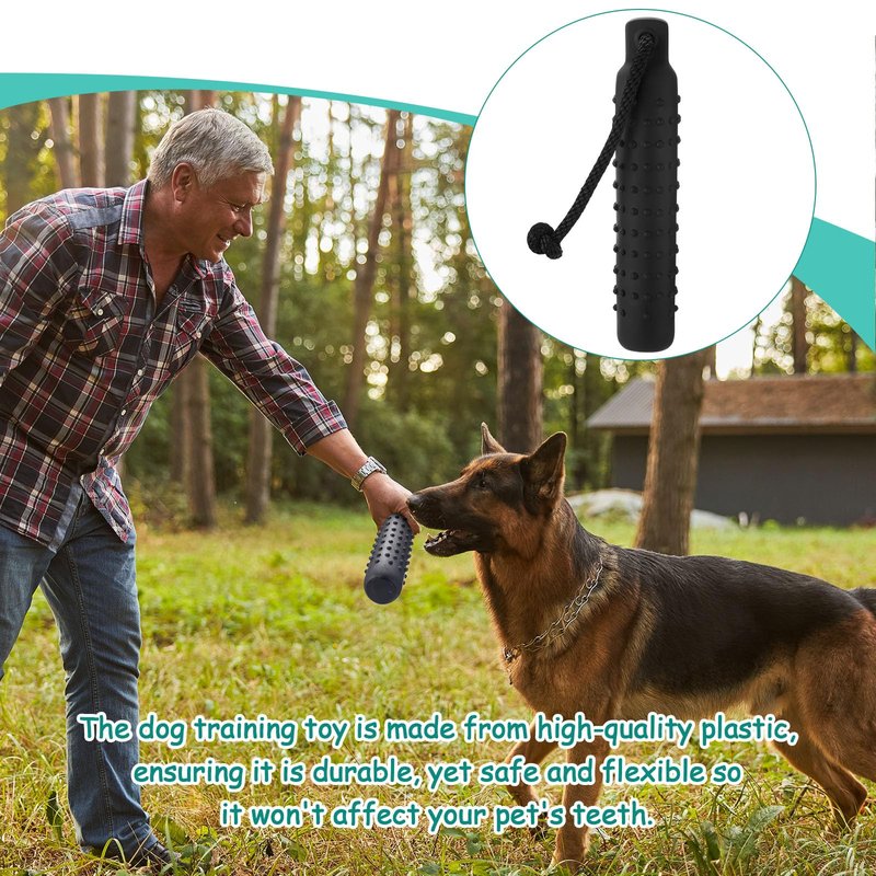 Features: Preserving play interest: It's important to remember that after game, the toy should be taken away from your dog to maintain interest. Keeping toys away after playtime prevents your dog from becoming bored, thus preserving the excitement of their favorite toy. Instinctual needs: This dog throw toy not just offers play time but also caters to your dog's instinctual needs. It stimulates your pet's desire to play, enabling him to release energy, and become happier and more lively. Every throw and fetch session with our hunting dog toys will brighten up your pet's day. Specifications: Material: plastic and vinyl Color: black Size: 11 x 2 inches Package includes: 1 x Dog bumpers Notes: Manual measurement, please allow slight errors on size. The color may exist a slight difference due to different screen displays. Small items are included, please keep them away from pets in case of choking risk. Before purchase, confirm whether the product size is suitable for your pet, and observe the pet's reaction when using. Please remove the product in time if there is any discomfort.