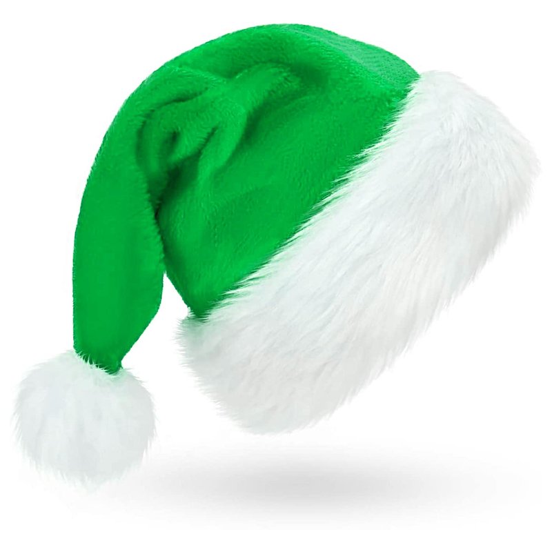 FOIMAS Santa Hat for Adults,Green Plush Christmas Hats with White Fur for Christmas Holiday Party Decoration Supply