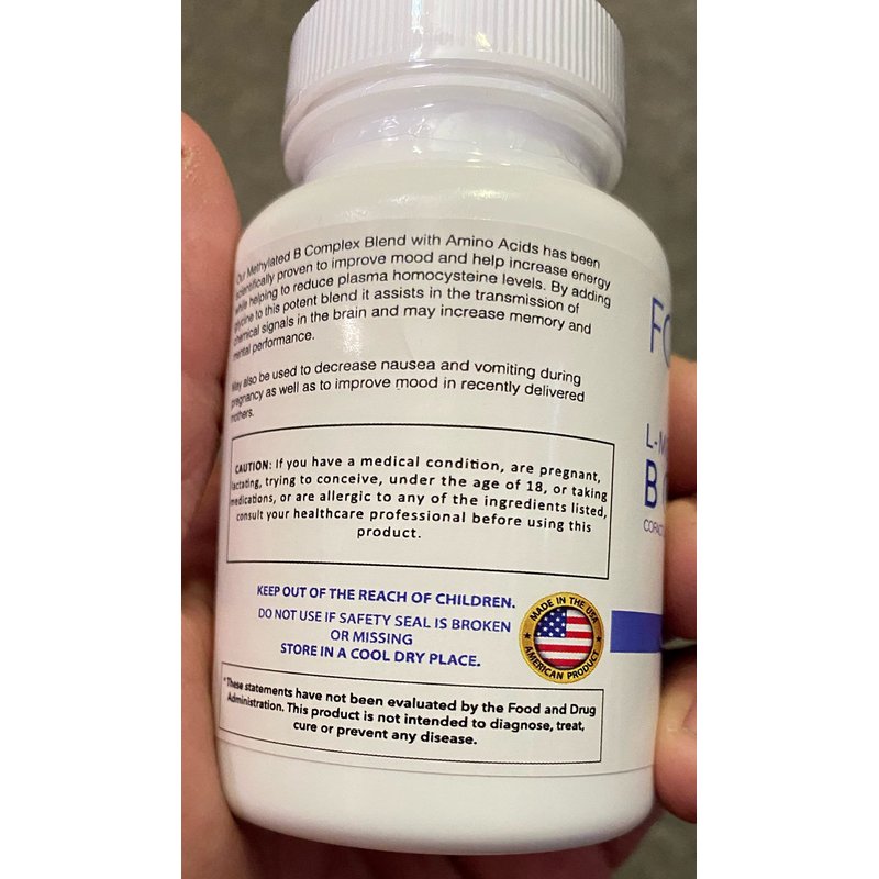 FolateMaxx L-Methylfolate + B12 Methylcobalamin & B6 Blend (15mg) - 60 Capsules - Active B-Complex with Cofactors & Essential Amino Acids - Non GMO, Gluten Free, No Fillers